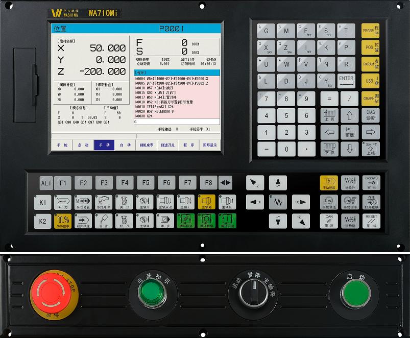 產(chǎn)品特點(diǎn):WA710MI數(shù)控系統(tǒng)是一款適用于三軸銑床或?qū)C(jī)的數(shù)控系統(tǒng),具有開放PLC梯形圖編程和用戶宏程序功能,非常適用于三軸機(jī)床的自動化高效加工以及各種自動上下料設(shè)備控制,其先進(jìn)的直線式后加減速控制使加工效率和曲面尺寸精度速度均高于一般數(shù)控系統(tǒng)。